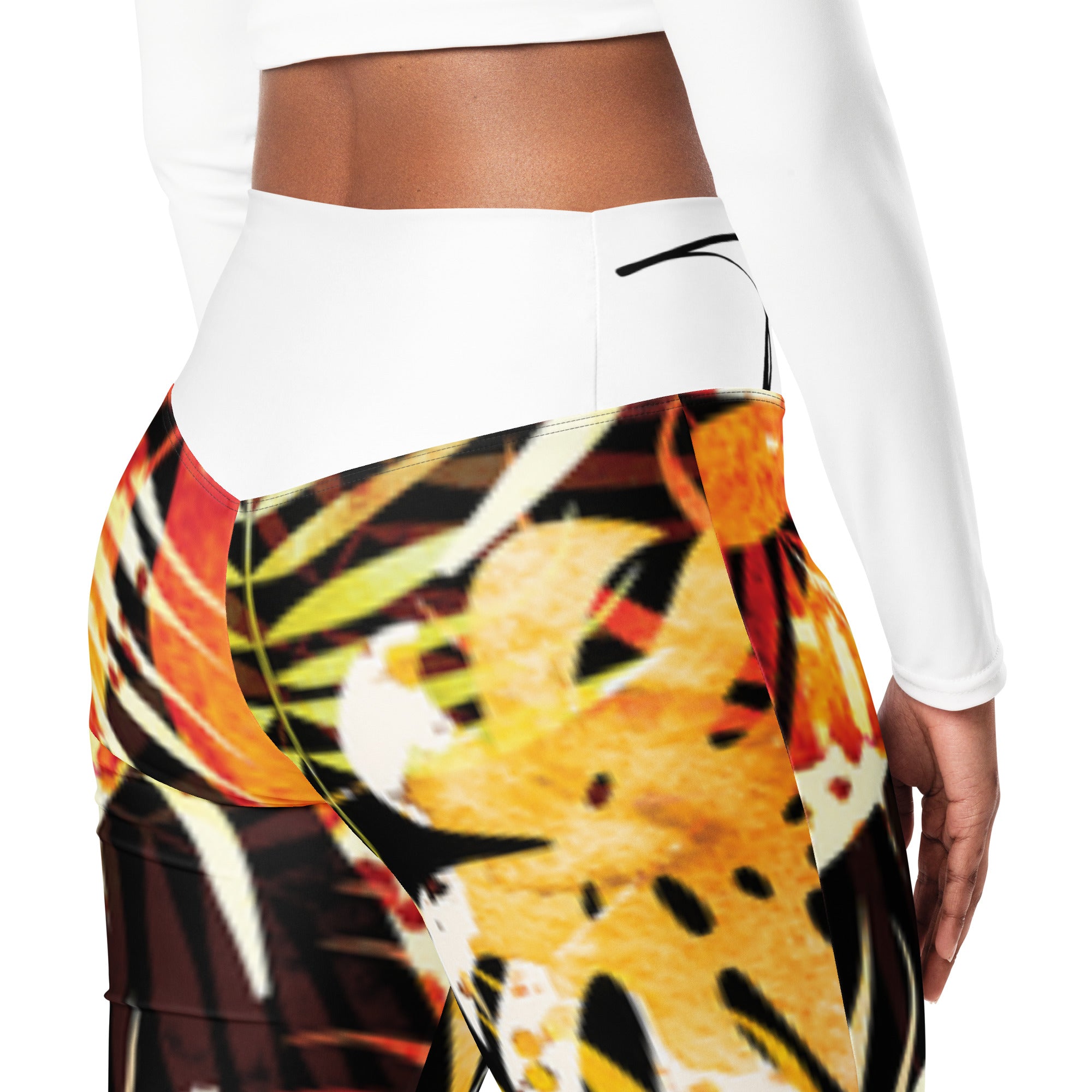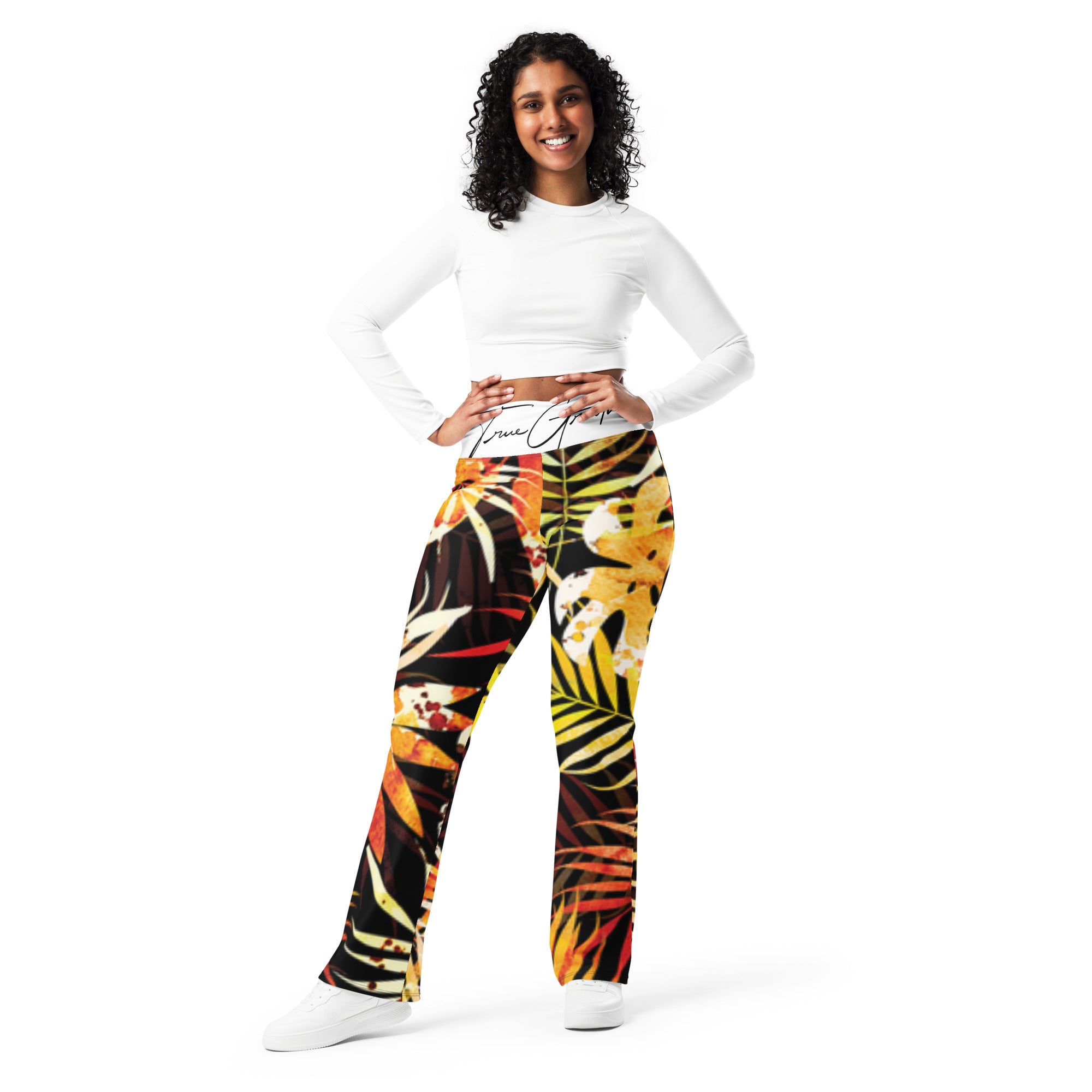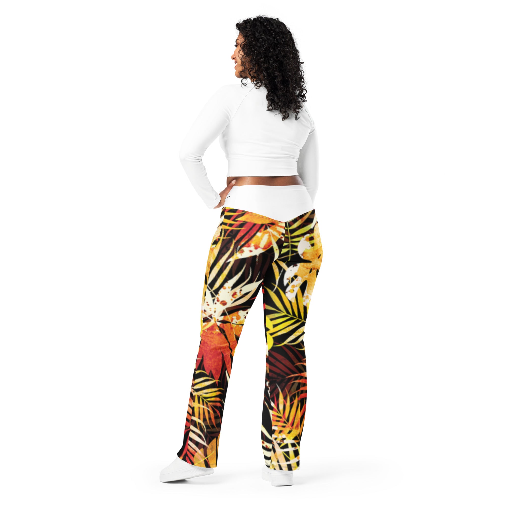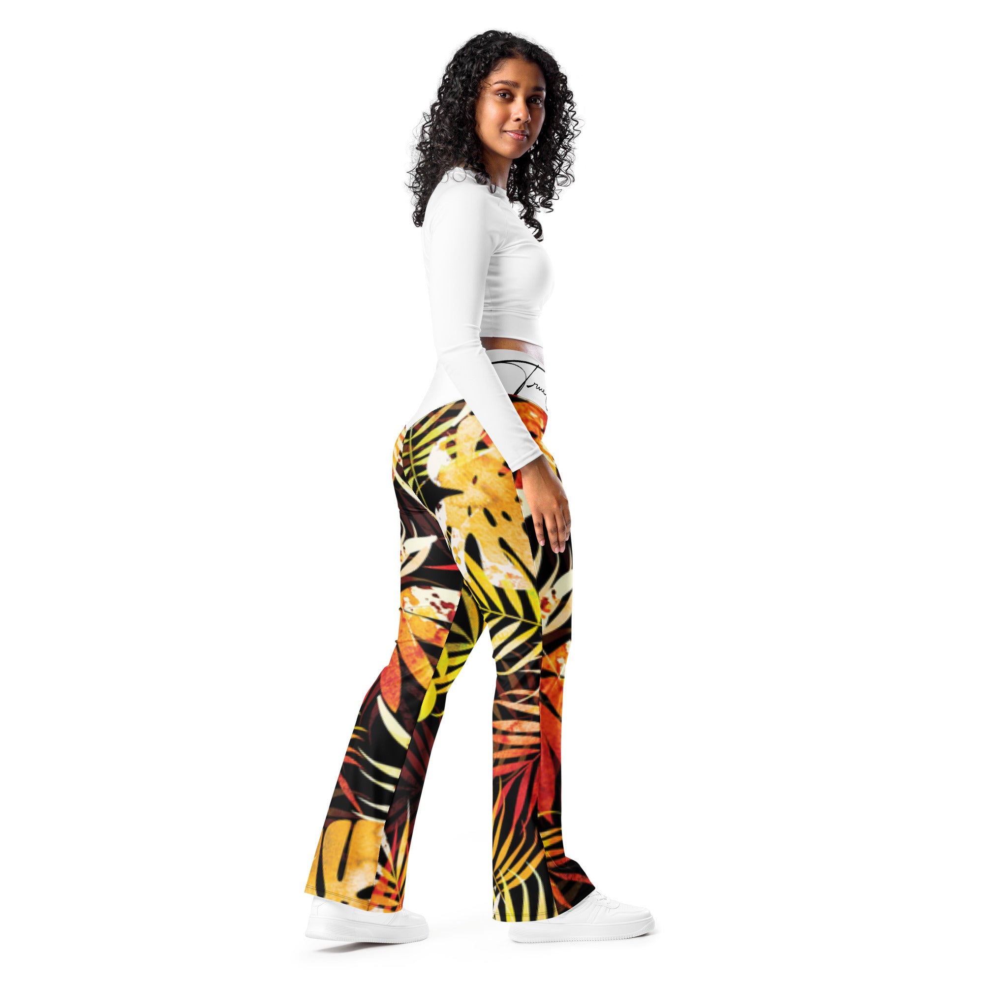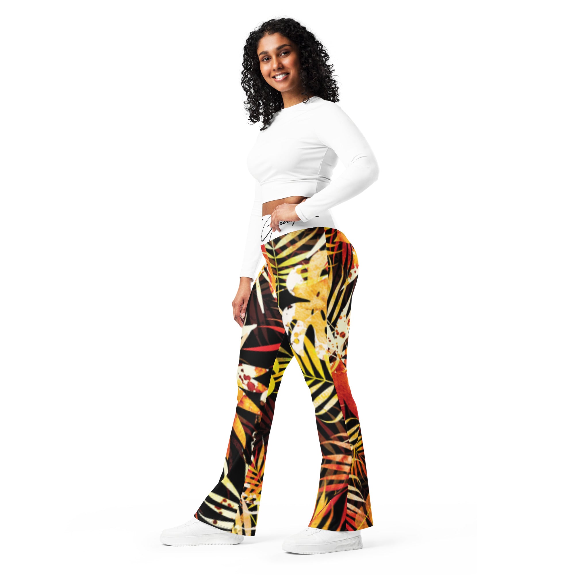 Designed to enhance your figure, these trendy leggings feature a high waist and a butt-lifting cut. The flared leg bottoms add a touch of style and make the leggings comfortable. Wear them on a walk, to the gym, or style them up with a bomber jacket or hoodie.