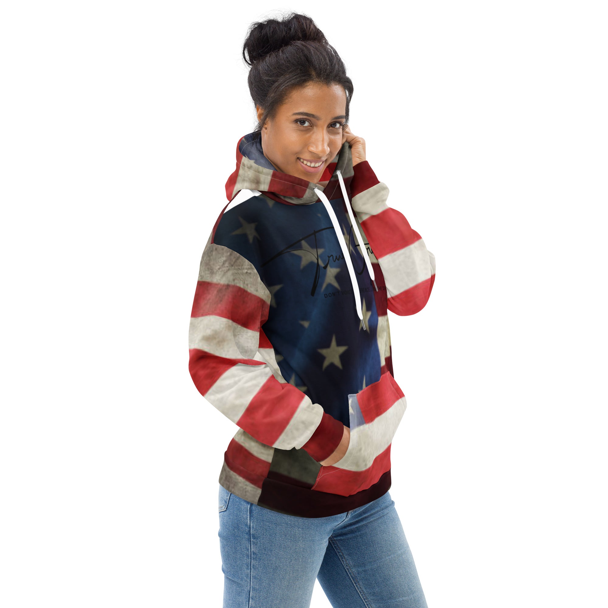 This comfy unisex hoodie has a soft outside with a vibrant print and an even softer brushed fleece inside. The hoodie has a relaxed fit, and it’s perfect for wrapping yourself into on a chilly evening.